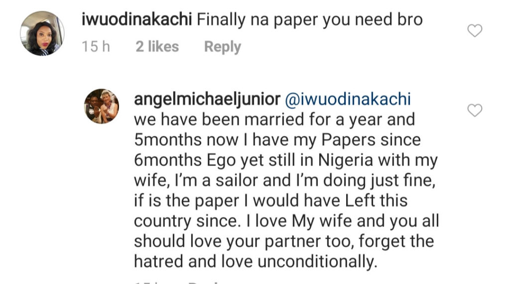 Replying a comment, Michael said he got his papers six months ago and still hasn’t left Nigeria.
