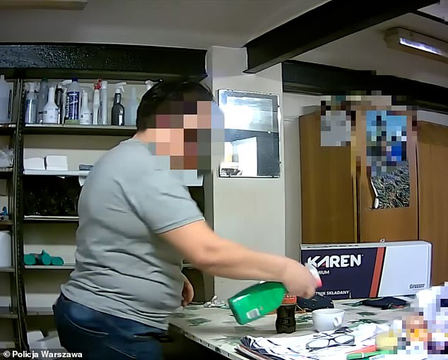 She then borrowed a hidden camera from a private detective, which captured Małgorzata W. spraying limescale and rust remover into the cup and stirring it into the drink.