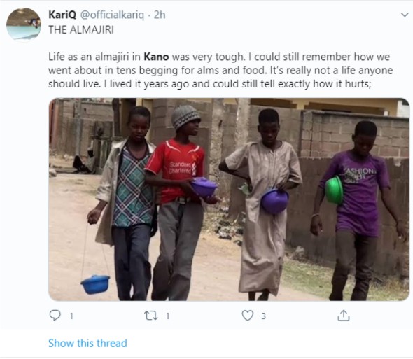 Writer Japheth Prosper has taken to Twitter to share the story of a former almajiri.