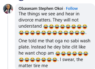 Obasesam Stephen Okoi, a Nigerian lawyer, has revealed that a client told her during a divorce case that her husband does not know how to go down on her.