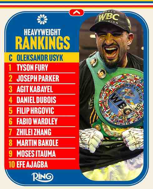 Joseph Parker continues his resurgence by climbing to No. 2, while Germany’s Agit Kabayel breaks into the top three, shaking up the traditional order. Daniel Dubois and Filip Hrgovic, both hungry young lions, take the fourth and fifth spots, proving the next generation of heavyweights is coming on strong.