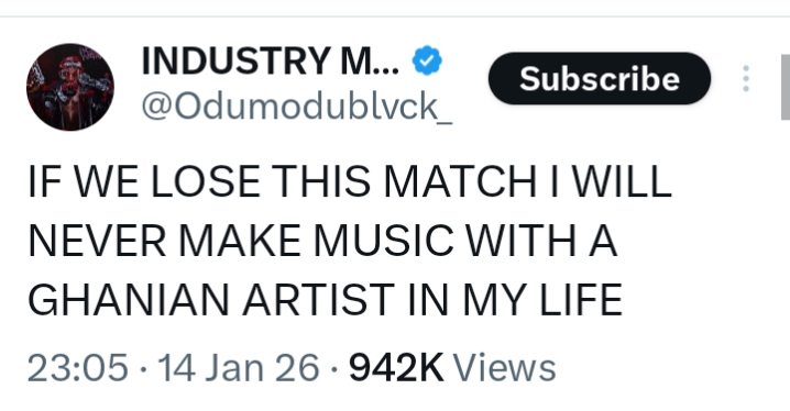 “If Nigeria loses tonight, no more Ghana collabs. It’s over.” — Odumodublvck (paraphrased from X/Twitter).