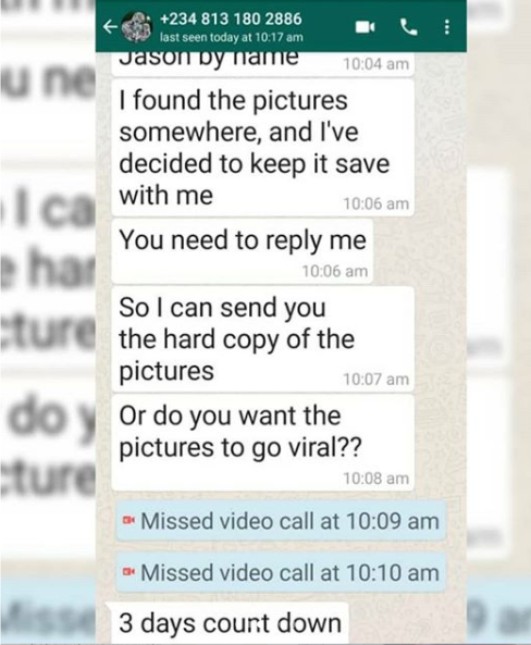 “So I have decided to share the messages and pictures sent by this person with everyone for you all to see! Thank you and God bless you! For you the blackmailer, I refuse to be bullied by you as I’m sure that I’m old enough to be your MOTHER!!”